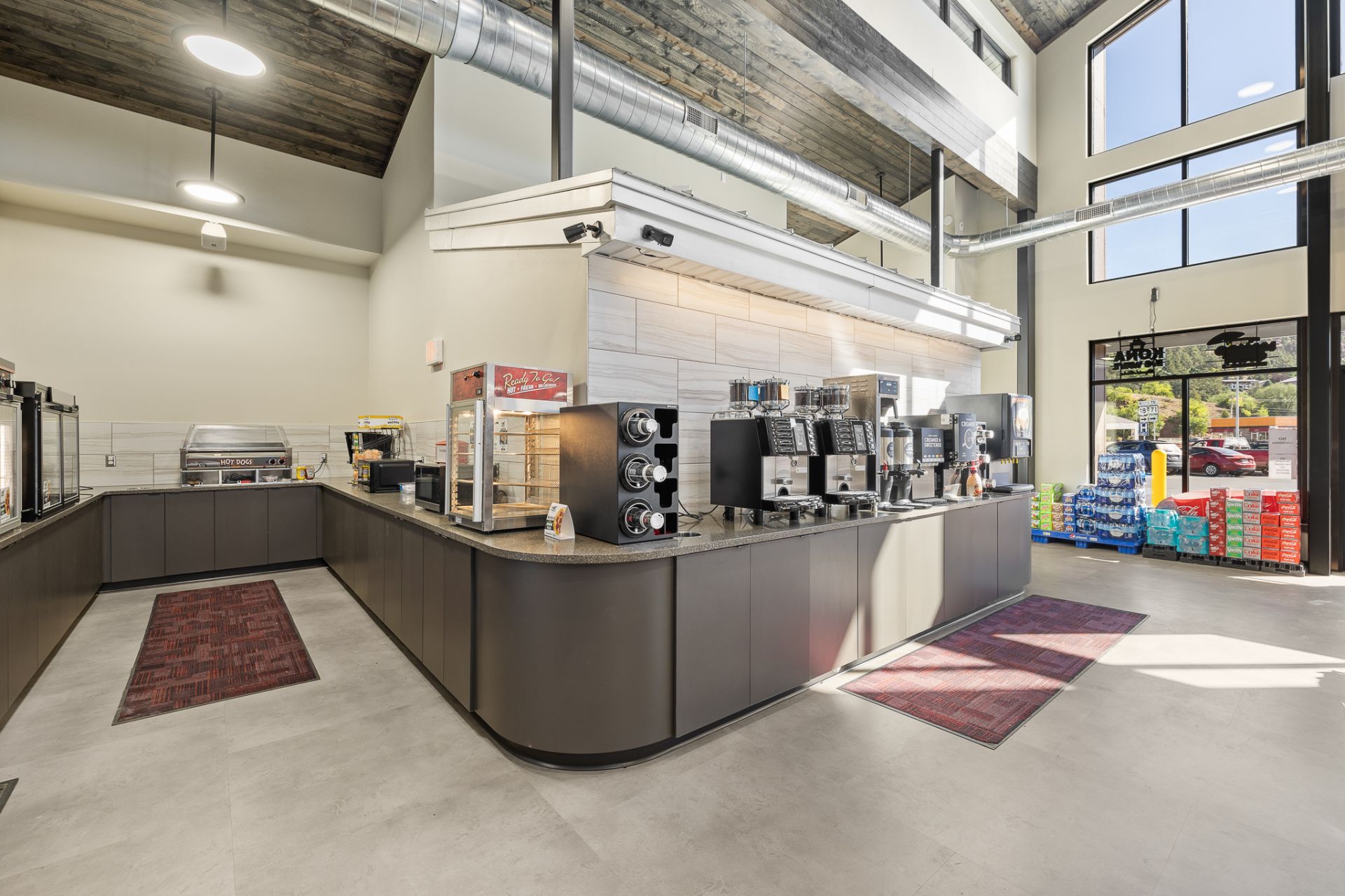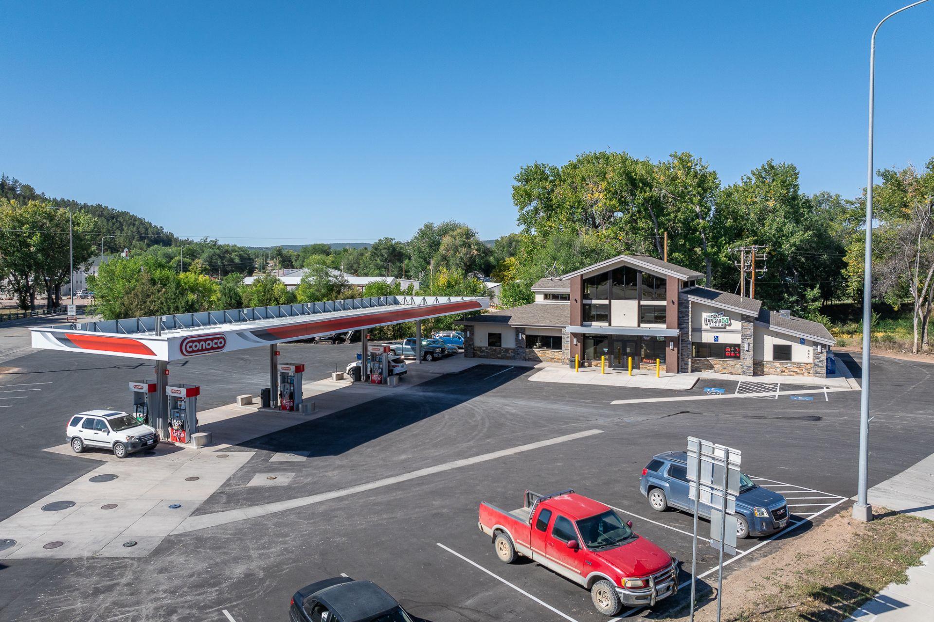 Beginning late winter of 2023, Rangel Construction started the design phase of a new facility for Big Bats in Hot Springs, SD. Working with its team of registered design professionals, the final documents were ready within six months, and construction began on the new 4,200 sq ft convenience store. Ten months later, in September of 2024, the new facility was open to the public. The building features both natural and cultured stone, painted exposed structural and decorative steel, wood paneled ceilings, open-air vaulted ceilings, and an abundance of windows, allowing for the flow of natural light into the space. The store is one of the first buildings seen entering the historic town of Hot Springs, and its appearance provides a welcoming façade that is complimentary to the natural landscape.