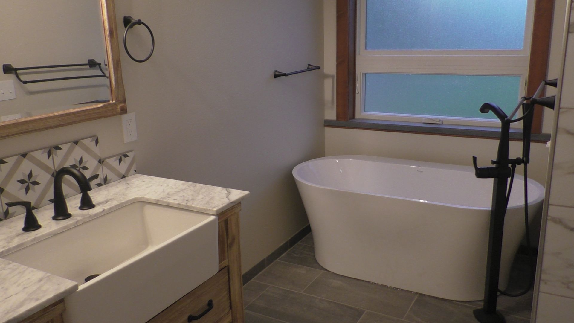 When Stan and Louise Michals purchased a 1920s-era Rapid City home back in 2010, they realized that the building needed some upgrades, but when they decided to remodel the house in 2020, they had difficulty finding a contractor to take on the job. When the couple contacted Rangel Construction in 2023, however, we agreed to price the project and began work on the house in early 2024. As is often the case with older homes, there were many quirky aspects to work around, including asbestos-clad ducting, a 12” crawlspace, seven different wall textures, and two species of hardwood flooring. The new features of the structure include a remodeled bathroom, a newly renovated kitchen, including all-new cabinets and fixtures, and a new bathroom addition to the rear of the house, along with all-new siding and trim on the exterior.
